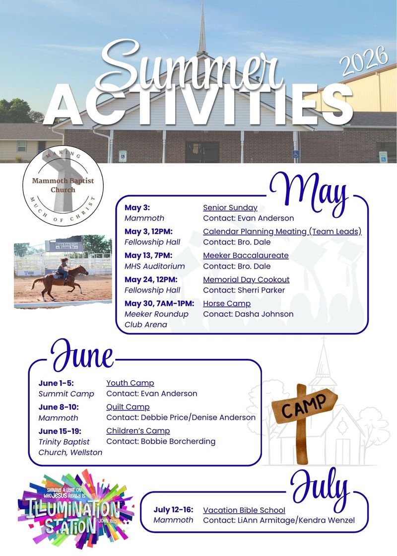 Mammoth Baptist Church in Meeker, Oklahoma, is seeking a part-time youth minister. We are looking for someone with a heart for discipling middle and high school students, fostering a supportive community, and partnering with parents and student ministry leaders.