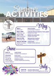 After a devotional, there will be horse demonstrations, roping demonstrations, as well as an opportunity to ride (led by a sponsor) or just try out the saddle for a picture or two! There will also be a bounce house, hot dogs, and other fun activities. Please wear sunscreen and closed toe shoes.